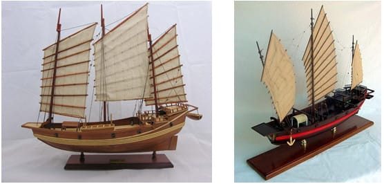 1. เรือสำเภาจีน ถือว่าเป็นของมงคลยอดนิยมในลำดับต้นๆในปัจจุบัน เรือสำเภาจีนนั้นส่วนใหญ่ทำมาจากไม้จริงๆ ทั้งตัวเรือและกระโดงเรือมีลักษณะรูปทรงสูง เพรียว ถือว่ามีพลังของ “ธาตุไม้” เป็นหลัก ตามธรรมเนียมของคนจีนนั้นเชื่อว่าเรือสำเภานั้นให้มงคลเรื่องของการค้าขายประสบความสำเร็จ เพราะผู้ที่เป็นสัญลักษณ์ของการใช้เรือสำเภาเพื่อการค้าขายนั้นก็ได้แก้ เจิ้ง เหอ มหาขันทีคนสำคัญของราชวงศ์หมิงผู้เดินทางไปจำเริญสัมพันธไมตรีและค้าขายกับประเทศต่างๆทั่วโลกมาแล้ว ดังนั้นหากท่านทำงานเกี่ยวกับการค้าขายก็มีความเชื่อว่า การตั้งเรือสำเภาก็จะเสริมมงคลให้ท่านค้าขายราบรื่น ได้กำไรงดงาม โดยตามศาสตร์ฮวงจุ้ยในระบบวิชาการก็ถือว่าหากท่านสามารถจะวางเรือสำเภาใน “ทิศตะวันออก” หรือ “ทิศตะวันออกเฉียงใต้” ได้ก็จะยิ่งเสริมพลังของฮวงจุ้ยในมุมนั้นได้มากขึ้นไปอีก และ ก็ถือว่าเป็นสิ่งของมงคลที่เหมาะเป็นพิเศษสำหรับท่านที่เกิดในปีขาลหรือปีเถาะ